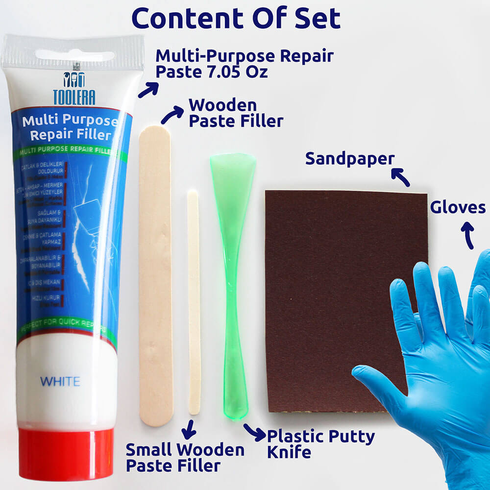 TOOLERA Porcelain Repair Kit | Ceramic, Marble, Quartz, Concrete, Wood, Granite, Travertine, Acrylic Countertop, Bathtub, Corian, Sink Chip, Crack Repair Kit | White Color